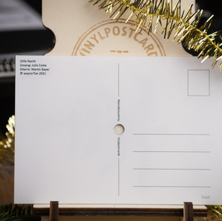 A Vinylpostcard featuring beautiful acoustic versions of traditional Christmas songs, such as "Stille Nacht", "Es wird scho glei dumpa" and "Maria durch ein Dornwald ging". Performed by Julia Costa and Martin Bayer and recorded, mixed and mastered by Kenneth Winkler at weyrerTon.